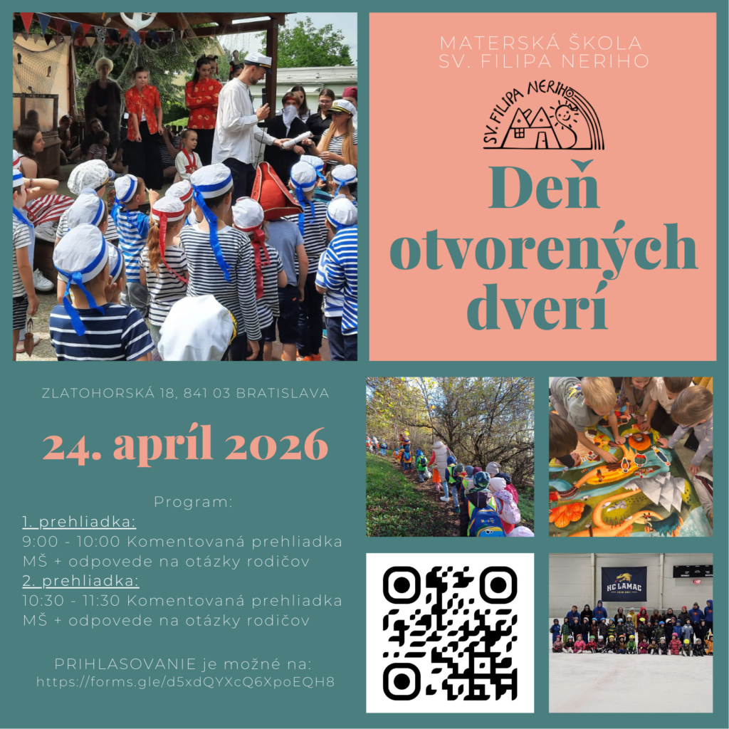 Pozývame rodičov a ich deti na Deň otvorených dverí v Materskej škole sv. Filipa Neriho. Príďte spoznať prostredie, v ktorom deti rastú, objavujú svet a rozvíjajú svoje schopnosti v bezpečnej a podnetnej atmosfére.
